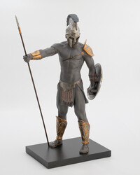 Эксклюзивная скульптура «Спартанский солдат» по мотивам битвы при Фермопилах. Фигурка из черного фарфора с медью и эмалью. Магнитная маска, проработанные доспехи. Автор — Эрнест Массуэ. Для коллекционеров и ценителей.