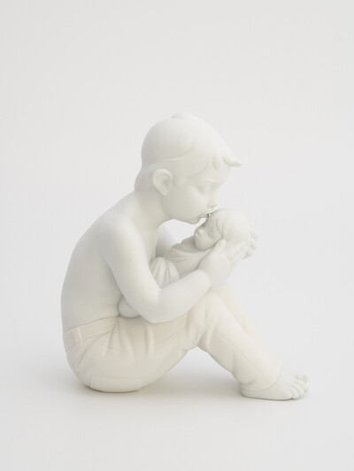 Трогательная фарфоровая скульптура, изображающая нежную встречу старшего ребенка с новорожденным братом или сестрой. Композиция символизирует чистоту братской любви, радость и очарование детства. Эта статуэтка станет идеальным подарком на рождение второго ребенка, выписку из роддома или как символ семейного счастья. В сцене переданы искренние эмоции и невинность, которые украсят ваш интерьер.