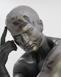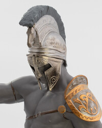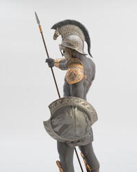 Эксклюзивная скульптура «Спартанский солдат» по мотивам битвы при Фермопилах. Фигурка из черного фарфора с медью и эмалью. Магнитная маска, проработанные доспехи. Автор — Эрнест Массуэ. Для коллекционеров и ценителей.