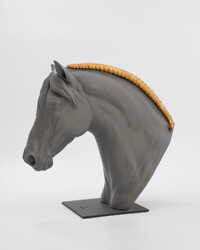 Скульптура «Эквинус» — стилизованный бюст лошади из матового черного фарфора с золотистыми деталями. Сочетание реализма и современной эстетики для изысканного интерьера. Эксклюзивное украшение для ценителей искусства.