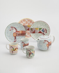 Эксклюзивный сервиз Hippomobile от Hermès — это гимн эстетике конного спорта. Дизайн Джанпаоло Паньи оживляет графические узоры, вдохновленные миром скачек, создавая динамичную и утонченную композицию. Каждый предмет, от тарелки до чашки, — это сочетание высочайшего качества и фирменного стиля дома Hermès, привносящее в трапезу дух аристократической страсти и движения. Сервиз на 6 персон из 13 предметов.