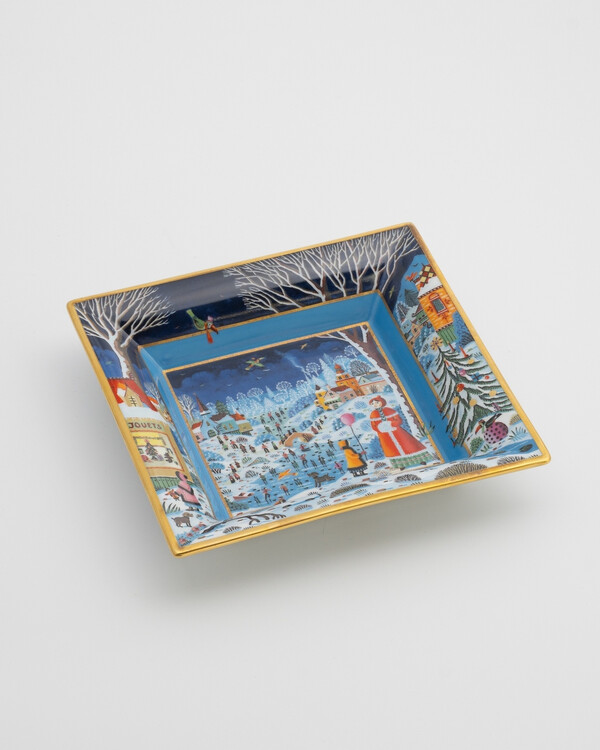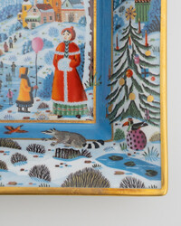 Эксклюзивное квадратное блюдце Haviland с зимней деревней. Лиможский фарфор, золотая окантовка 24 карата.
