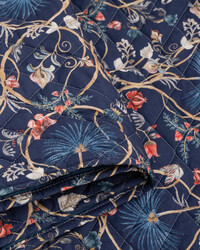 Погрузите спальню в атмосферу средиземноморского сада с покрывалом Mirabello из коллекции Oasis. Глубокий синий фон подчеркивает изысканную вышивку золотых стеблей, бирюзовых листьев и коралловых цветов. Итальянское качество, эксклюзивная стежка и богатая палитра создают визуальную глубину и неповторимый уют.